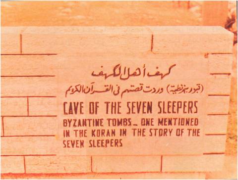 شكل رقم (1): لوحة الدلالة في الموقع المكتشف لاصحاب الكهف