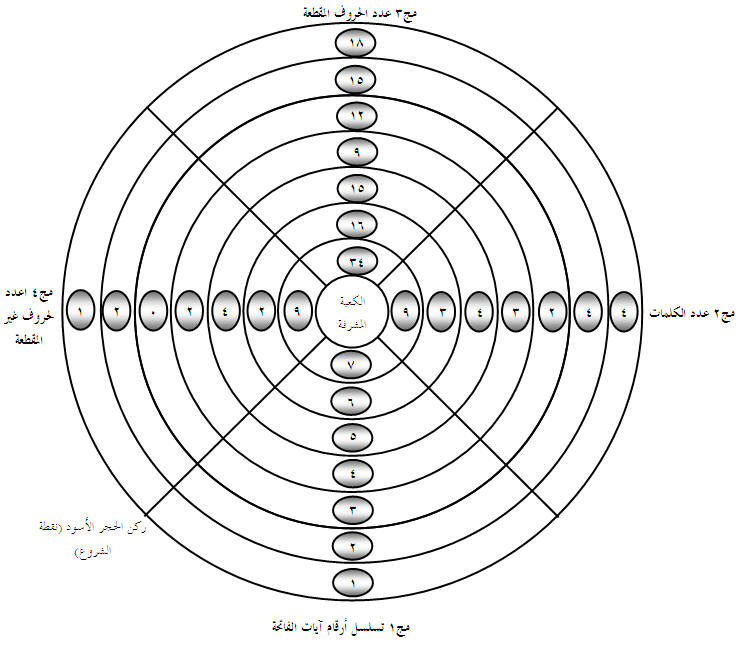 (1) المنظومة السباعية في سورة الفاتحة حسب ظاهرة الطواف حول الكعبة أنظر الجدول